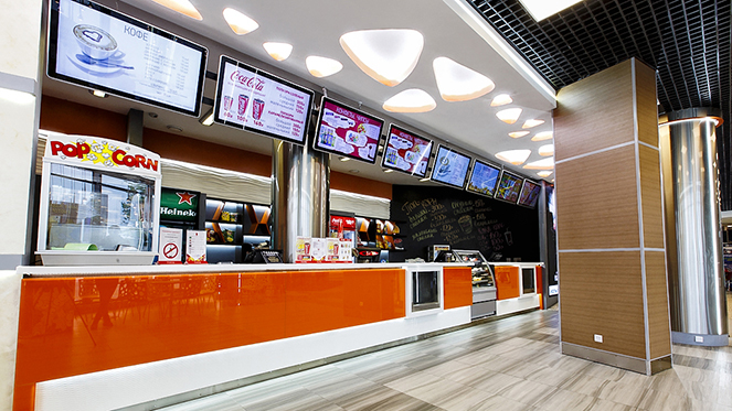 - Кинобар, где можно приобрести попкорн, колу, снеки, закуски, а также купить кинобилеты